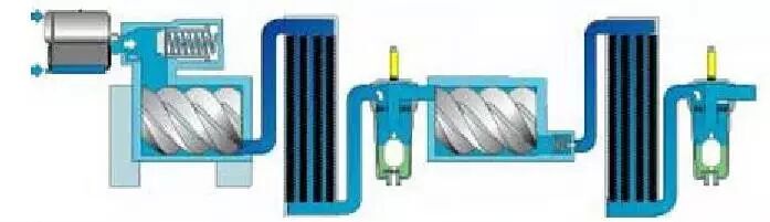 ● 10%空气通过卸荷阀-低压转子-中冷-高压转子,排气消音器-吹干系统内滞留的潮湿水汽。