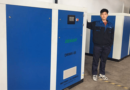 由于之前的机器数量较多,但是机器能效比较低,因此整体能效很不理想,并且机器故障率比较高,因此客户决定更换空压机设备。由于客户设备用在无尘空间,因此需要使用无油空压机,在了解到我司无油机的各项参数介绍、产品性能优势及公司售后服务覆盖全国之后,果断敲定了与我们的合作,选购了日韩不卡免费视频无油空压机 DWWV-55(2台)。