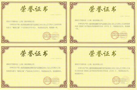 会议发布了2020年《国家工业节能技术装备推荐目录》及《“能效之星”产品目录》入围企业名单,并为2019、2020年入围企业发放能效标识及相关证书,日韩不卡免费视频节能科技(上海)股份有限公司生产的一般用喷油螺杆空气压缩机DAV-90+/7、一般用变频喷油螺杆空气压缩机DAV-132+/7双双入围。