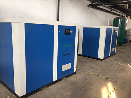 由于之前的机器数量较多,但是机器能效比较低,因此整体能效很不理想,并且机器故障率比较高,因此客户决定更换空压机设备。由于客户设备用在无尘空间,因此需要使用无油空压机,在了解到我司无油机的各项参数介绍、产品性能优势及公司售后服务覆盖全国之后,果断敲定了与我们的合作,选购了日韩不卡免费视频无油空压机 DWWV-55(2台)。