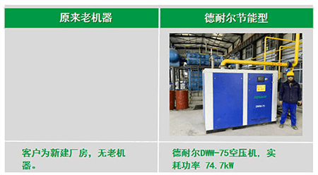 17年7月,得知客户需要新增设备,很快赶往客户现场做技术沟通及机器选型,现场从能效、售后、技术等层面全面的分析了我们的产品优势及后续带来的节能效果;为初步沟通奠定了良好的基础;后期我们的竞争对手有阿特拉斯、博莱特、捷豹等品牌,但客户还是因为我们的专业性及节能效果深深吸引,终采购我司两台DWW-75干式无油螺杆空压机。
